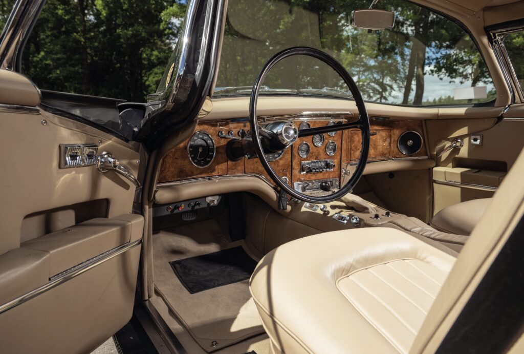 Het is een prachtige, indrukwekkende auto, met een geheel eigen persoonlijkheid onder de grote Gran Turismo’s van toen. De stalen wielen met de kloeke ‘knock-off spinners’ staan hem uitstekend, misschien wel beter dan spaakwielen die je niet eens moet willen vanwege de trekkracht waartoe de Chrysler V8 in staat is.