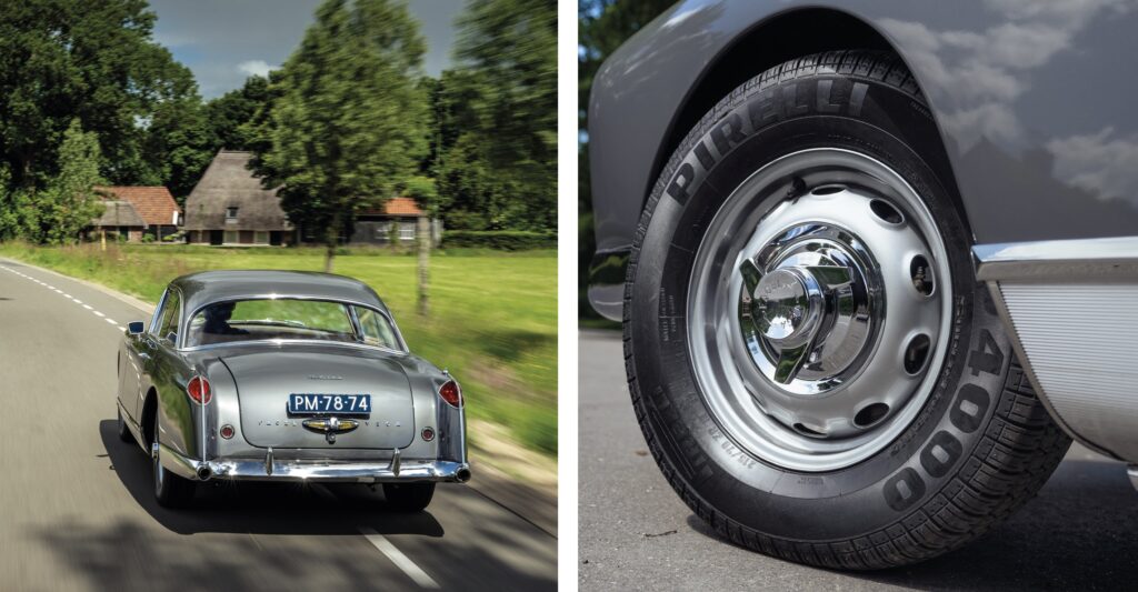 De schijfremmen zijn zelfs naar hedendaagse maatstaven behoorlijk groot en het systeem is bekrachtigd, waardoor je de HK500 zonder extreme pedaaldruk uitstekend kunt laten vertragen. Het is desondanks verstandig anticiperend te rijden gezien de waarde van de auto en ook de zeldzaamheid – er zijn slechts 490 HK500’s gebouwd, waarvan er voor zover bekend nog 329 bestaan.