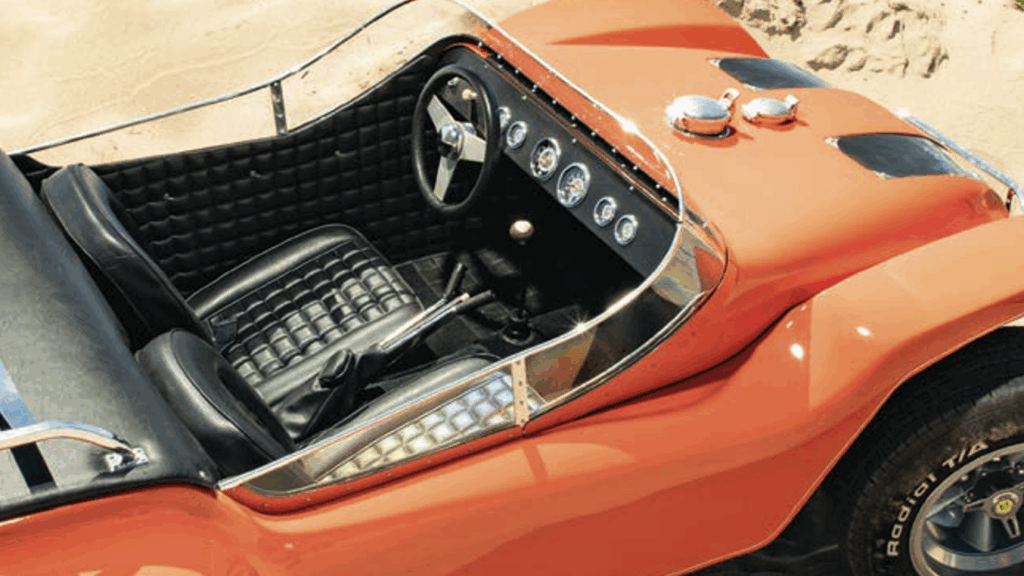 De passagier zit iets comfortabeler in de buggy dan de bestuurder, die moet omgaan met pedalen die door de enorme wielkasten een flink stuk naar rechts zijn geplaatst. Beide inzittenden hebben zicht op instrumenten van Stewart Warner die over de volle breedte van het dashboard zijn gemonteerd, met onder meer een meter die de temperatuur van de cilinderkop weergeeft – een extra voorziening die eraan herinnert dat de motor van de Corvair luchtgekoeld is, net als die van de Kever.