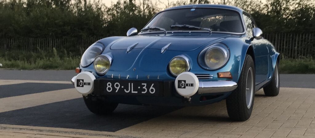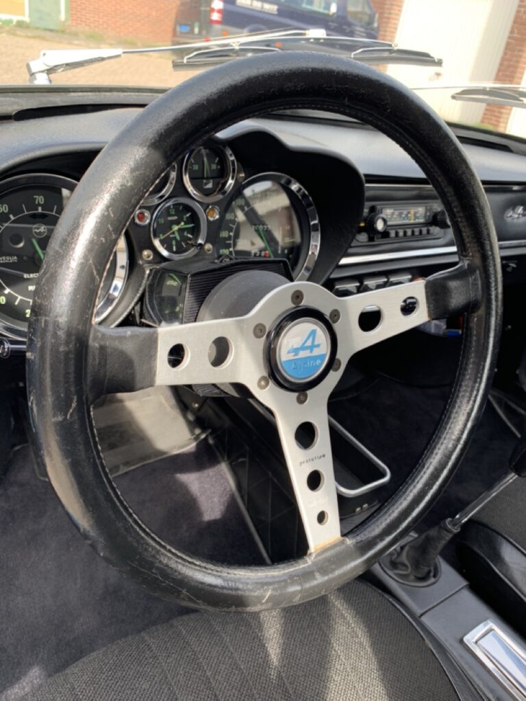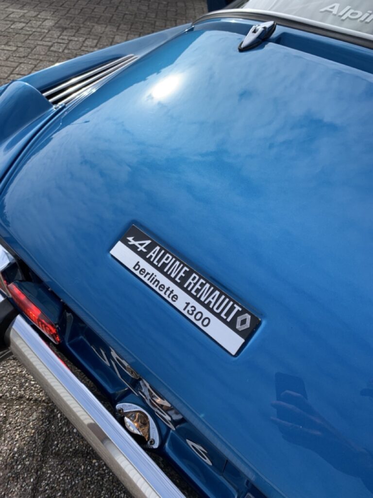 Als de garage opengaat, staat er onder een stofhoes een prachtig glimmende Alpine Berlinette, in de kenmerkende kleur Bleu Alpine, met de vier ronde koplampen en twee grote Cibië-verstralers. Domien licht toe: “In 2015 hebben we de auto helemaal uit elkaar gehaald om vermoedens van roest te onderzoeken. Dat is ook het moment geweest dat ik besloten heb om hem over te spuiten, zodat we kleine krasjes en schadeplekjes konden aanpakken. De roest viel overigens erg mee. Het was een hele klus en we hadden een deadline, want we wilden graag naar het de viering van het zestig jarige jubileum van Alpine dat in september 2015 in Dieppe georganiseerd werd. Het is gelukt en samen met mijn vrouw waren we aanwezig bij ’60 Ans Alpine, Rassemblement Dieppe’, een fantastisch evenement waar we ook een leuk hotel hadden. De auto werd zo bijzonder gevonden dat we een beschermde parkeerplaats aangeboden kregen.”