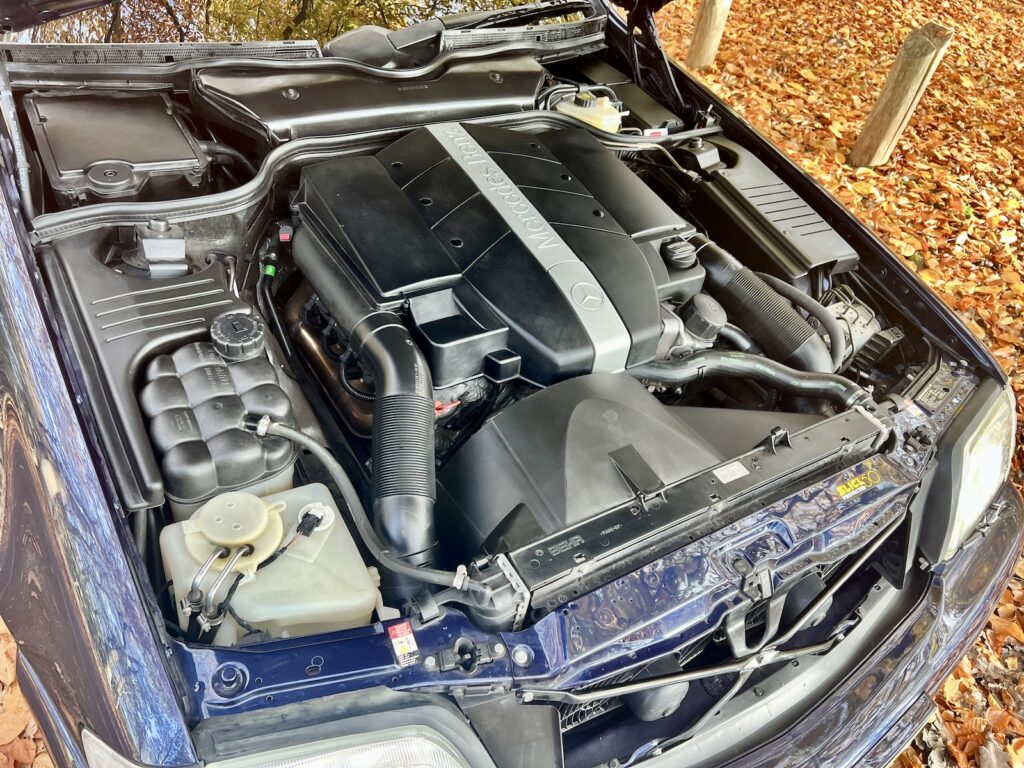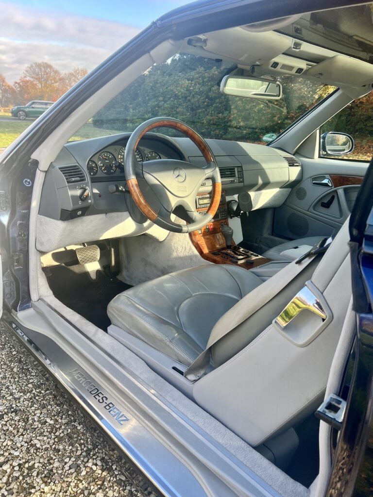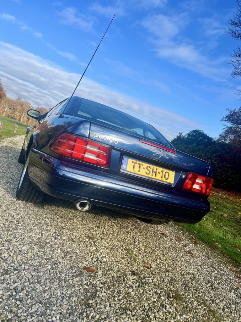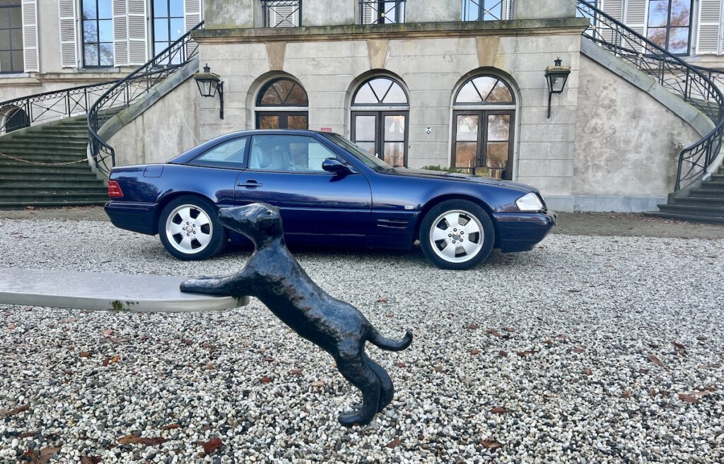 Het is een Mercedes-Benz SL 320 (R129) in Azurit blauw metalliek (kleurcode 366) met nu zo’n 170.000 kilometer op de teller. De facelift versie is volgens Frank een betere keus, niet alleen omdat hij de koplampen en andere details mooier vindt, maar ook omdat er nog tal van verbeteringen zijn doorgevoerd ten opzichte van het eerste model. “De 3,2-liter V6 is een heerlijke motor en met 224 pk zit er genoeg pit in. Mercedes leverde ook een V8 en zelfs een 6-liter V12 (SL 600) maar voor mij is dit de fijnste en lichtste combinatie.”