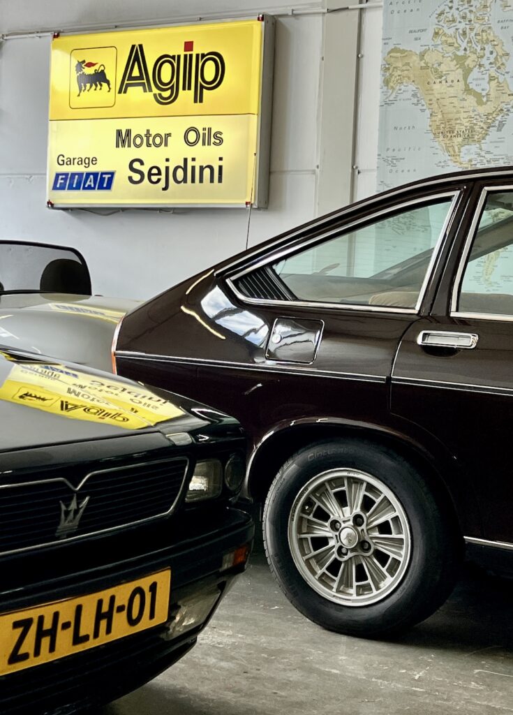 Het is het minst succesvolle topmodel van Alfa Romeo, de Sei, dat we aantreffen in een anonieme bedrijfsunit in Naarden, waar Guido zijn bescheiden verzameling auto’s beheert. Er staan nog meer commerciële mislukkelingen: een donkerbruine Lancia Beta 1600 Berlina (1976), een lichtblauw metallieke Lancia Gamma Berlina 2500 i.e. (1982), een Maserati 2.24 (1992), een zwarte Fiat 130 3200 sedan (1973) en, als uitzondering op de regel, een vrij recente Fiat Barchetta. Voor het dagelijkse vervoer vertrouwt hij op zijn Lancia Thesis, wat eveneens geen kaskraker is geweest voor Lancia.