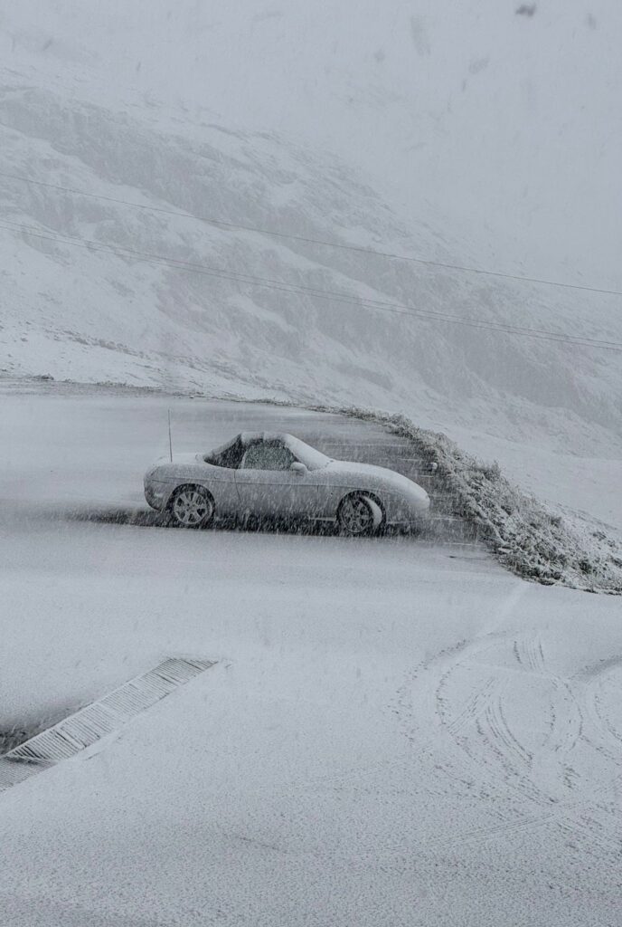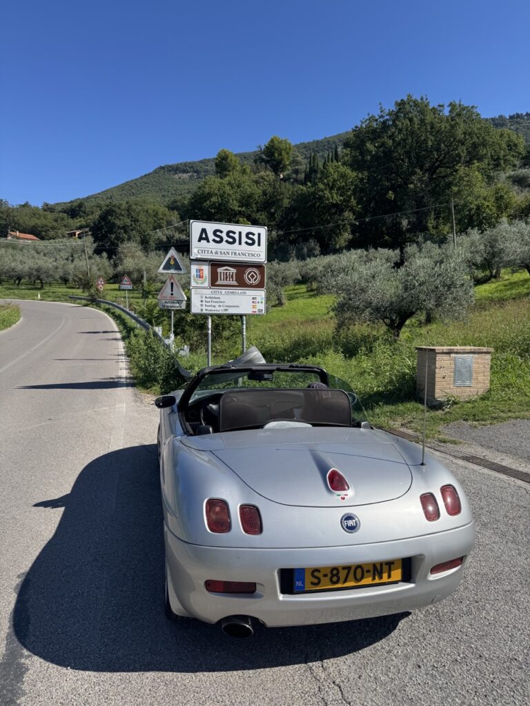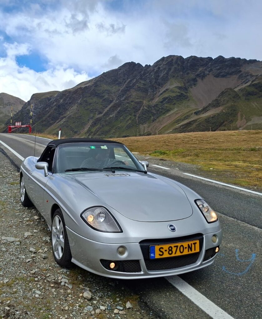 Met de Barchetta zijn Guido en zijn vrouw in de zomer naar Italië geweest. In totaal reden ze 4500 kilometer in twaalf dagen, zonder enig probleem en waar nodig hield de airconditioning de reis aangenaam, met gesloten kap uiteraard. Guido: “We zijn natuurlijk via de Stelvio gegaan, we hadden dit keer zelfs een hotelovernachting boven op de pas. In hartje zomer was het daar bij aankomst al fris met zeven graden, en toen we de volgende ochtend wakker werden lag er een pak sneeuw. Door de regen van de dag ervoor was bovendien een ijslaag ontstaan die het wegrijden tot meer dan een fijn avontuur maakte. Met heel voorzichtig gebruik van handrem en remmen zijn we op onze zomerbandjes eerst een stuk naar beneden gegleden tot waar de sneeuwschuivers hun werk hadden gedaan. Niet veel later zaten we in korte broek bij 28 graden op een terras in Genua. Zo’n reis met een bijzondere auto geeft echt een extra dimensie, zelfs met de Barchetta die met airco en Carplay voorzien is van alle moderne luxe. We zijn tot onder Napels geweest, heerlijk!”