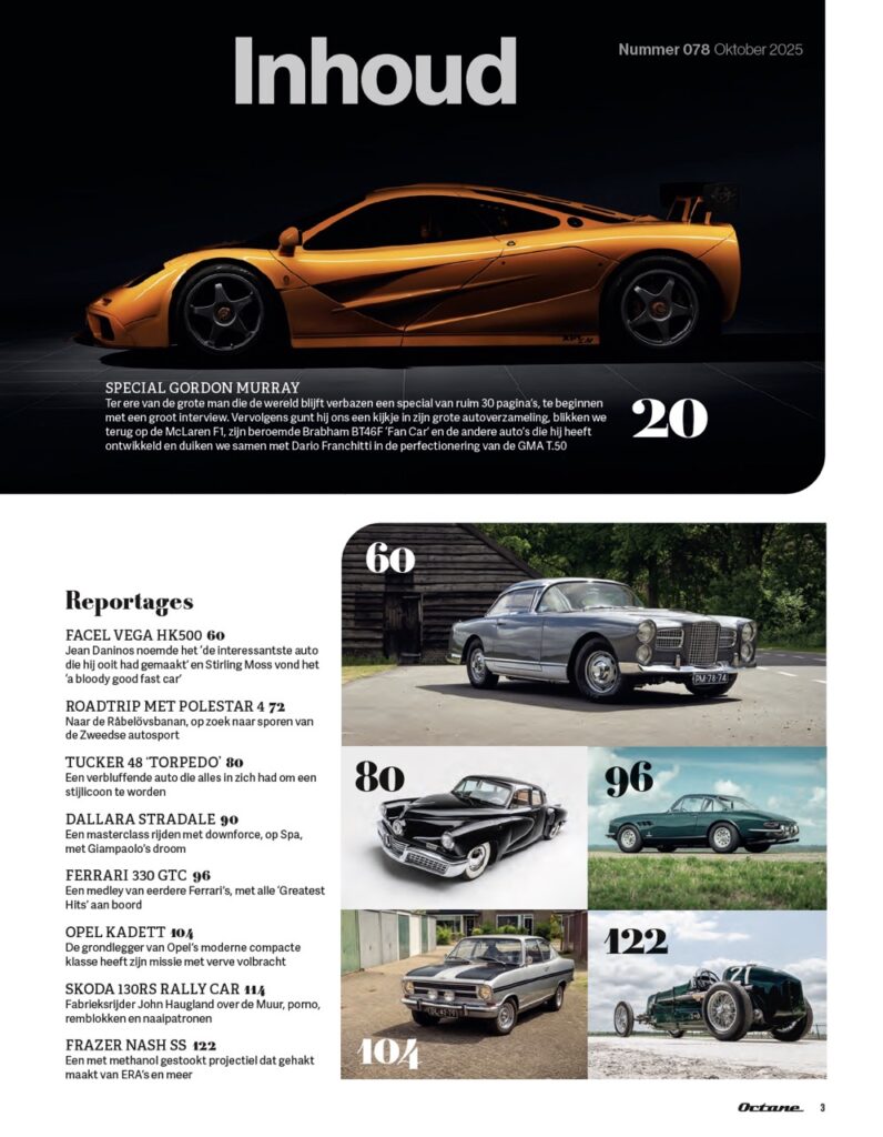 Octane Magazine 078 ligt vrijdag 10 oktober bij onze abonnees in de brievenbus en is dan ook te koop in de betere boekhandels. Online lezen kan op Readly.com maar bestel uw eigen exemplaar hier zodat wij die op tijd kunnen toesturen.