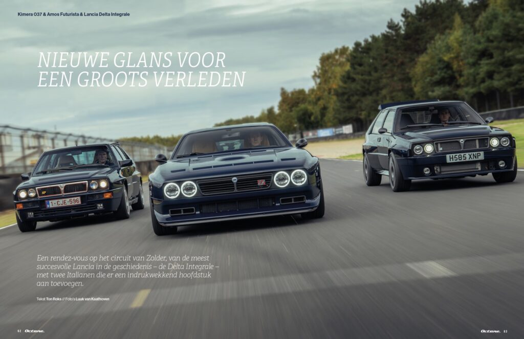 Een andere ontmoeting van formaat is die van de Kimera 037, Amos Futurista en Lancia Delta Integrale op het circuit van Zolder – drie kanjers van auto’s elk op een eigen wijze. Voorts brengen we dit nummer een interview met Giorgetto Giugiaro, een reisverhaal door Colorado met een Toyota Land Cruiser, plus reportages over een Talbot Lago Streamliner, de Stelvio Pas, twee Mini werkpaarden, de Swallow Doretti, een Rolls-Royce Shooting Brake en de mysterieuze, zelfgebouwde raceauto van Aart de Vos.