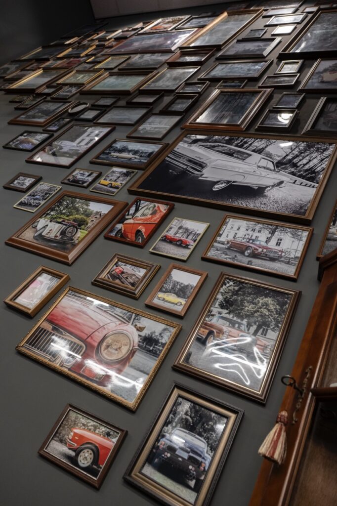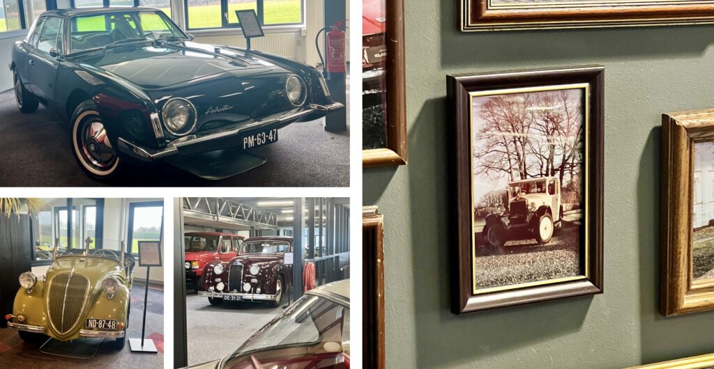Op de ‘wall of fame’ langs de trap hangen foto’s van eerder verkochte auto’s en ook hier blijkt elke auto een verhaal te hebben. Heel zeldzaam was een auto van het merk Mathis. Alex: “Dat was een autofabrikant in Straatsburg, in de jaren 1910 tot 1950, net als Bugatti in die tijd en die omgeving. De auto is verkocht aan een Amerikaan, met de achternaam Mathis en bij navraag bleek het een verre neef te zijn van de oprichter, die een historische verzameling van het merk aan het samenstellen was. Zo zijn er wel meer verhalen te vertellen natuurlijk, zoals over een Lancia Flavia Zagato die naar een verzamelaar in Brazilië is gegaan die wellicht ook belangstelling heeft voor een andere Lancia die ik nu hier heb staan. Er was iemand die de Amphicar uit mijn assortiment alleen wilde kopen als er bewijsbaar mee gevaren kon worden. Dus hebben wij die auto bij Zeewolde te water gelaten en er een rondje mee gevaren. Doodeng en het vaart voor geen meter, maar het bewijs was geleverd.”