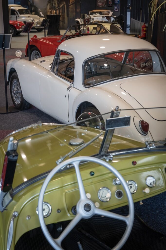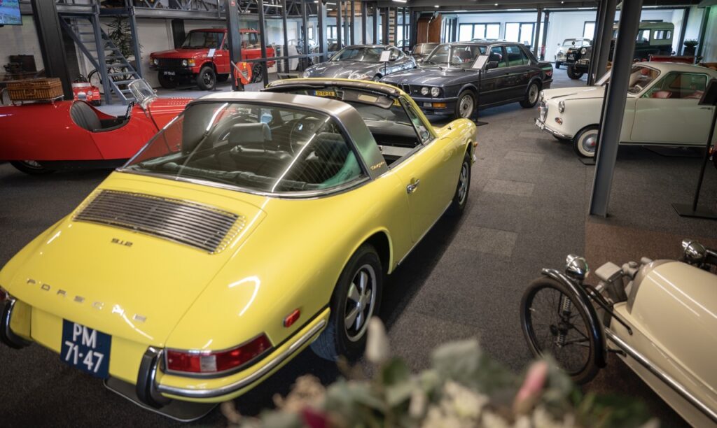 Lopend door de showroom, met twee verdiepingen, komen we langs een onlangs binnengekomen, gele Porsche 912 Targa uit 1968 die door een Nederlandse verkoper in consignatie bij Alex is neergezet. Alex: “Het is een auto die oorspronkelijk uit Californië komt en hij is zo binnengekomen zoals hij hier staat. Dus we hebben er alleen een doekje overheen gehaald.” En dat ondanks hij ooit besloten heeft om geen Porsche’s meer te doen omdat daar een heel ander publiek op afkomt dan op de MG’s, Lancia’s en Jaguars. Elk merk heeft zijn eigen type liefhebber en koper maar Alex gaat niet op de details in en wil zeker niet generaliseren. Over de Porsche: “Deze vond ik zo mooi en een 912 is toch weer minder uitgesproken dan een 911, dus wie weet. Ongeveer de helft van mijn aanbod is in consignatie, iets dat ik een eigenaar adviseer als hij of zij geen haast heeft. Het levert vanzelfsprekend meer op dan dat ik de auto inkoop. Voor mijzelf is het fijn dat ik twee partijen bij elkaar breng en alleen de bemiddeling hoef te doen.”