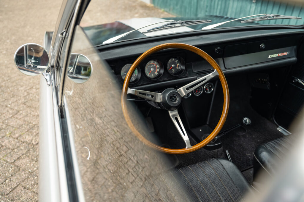 Het interieur van de coupé is weliswaar ingetogen maar toch sportief, met een groot, imitatiehouten stuurwiel en een zwart dashboard, met daarop een Rallye-embleem om te bevestigen dat je niet in zomaar een Kadett hebt plaatsgenomen. Drie grote klokken prijken voor je neus, waarvan ook de toerenteller standaard was. In de middenconsole zie je drie instrumenten van VDO: een ampèremeter, oliedrukmeter en een klokje. Een lange pook steekt uit de vloer om de vierbak te bedienen. De stoelen zijn zeker niet sportief te noemen en tijdens snel genomen bochten is er nauwelijks zijdelingse steun voorhanden. Er is ruim voldoende plek voor vier volwassenen en dankzij een flinke bagageruimte hoeven de koffers tijdens vakantiereizen niet op het dak meegevoerd te worden. Deze Kadett combineert daarmee de praktische mogelijkheden van de Kadett A als gezinsauto met de uitstraling van een spannende sportcoupé. Voor je rijtjeshuis in het dorp stond hij een stuk beter dan zo’n ‘suffe’ sedan. De nieuwprijs in 1967 voor de ‘gewone’ coupé was 7650 Nederlandse gulden, de Rallye vergde een extra investering van 840 gulden.