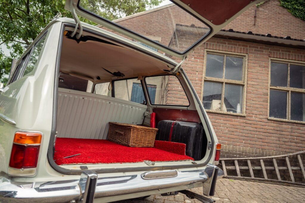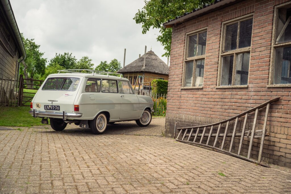 Als je naar de stationwagen kijkt, geparkeerd bij een boerenschuur in de Betuwe, is het gemakkelijk te begrijpen waarom deze Opel de mensen zo aansprak. De mintgroene auto ziet er zelfs schattig uit met de ronde koplampen die je indringend aankijken, de twee bescheiden verstralers op de verchroomde voorbumpers, zijn white-wall banden, de spatlappen met ‘GM’ erop en het optionele dakrek, of ‘imperiaal’ zoals dat toen werd genoemd. Als de achterklep wordt geopend, die tot aan de bumper reikt, zie je vooral veel period-correct rood tapijt en heel veel ruimte meer dan door de sedan wordt geboden. Vooral daarmee is hij volgens Opel marktleider in zijn segment geworden.