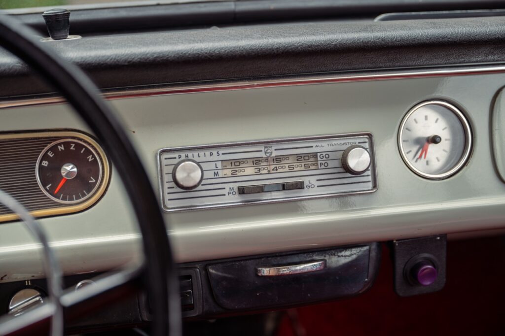 Het dashboard is – met gevoel voor understatement – een stuk eenvoudiger te noemen dan dat van de moderne Astra Sports Tourer die we hebben meegenomen. Je ziet een groot stuurwiel, met links daarvan drie schuifregelaars voor de ‘klimaatbeheersing’, de choke en wat knoppen voor de verlichting. Rechts van de lintsnelheidsmeter prijken een originele radio van Philips, een klokje en een asbak met aansteker. Zo simpel kon een auto zijn in de jaren ’60. En nu we toch aan het vergelijken zijn: als de Caravan naast de zwarte Astra geparkeerd staat, is het verschil in afmetingen enorm en de uitstraling van beide auto’s is totaal anders. De Kadett probeert je aan te spreken met nuchtere, praktische eigenschappen, de Sports Tourer met verleidelijke en vooral sportieve lijnen.