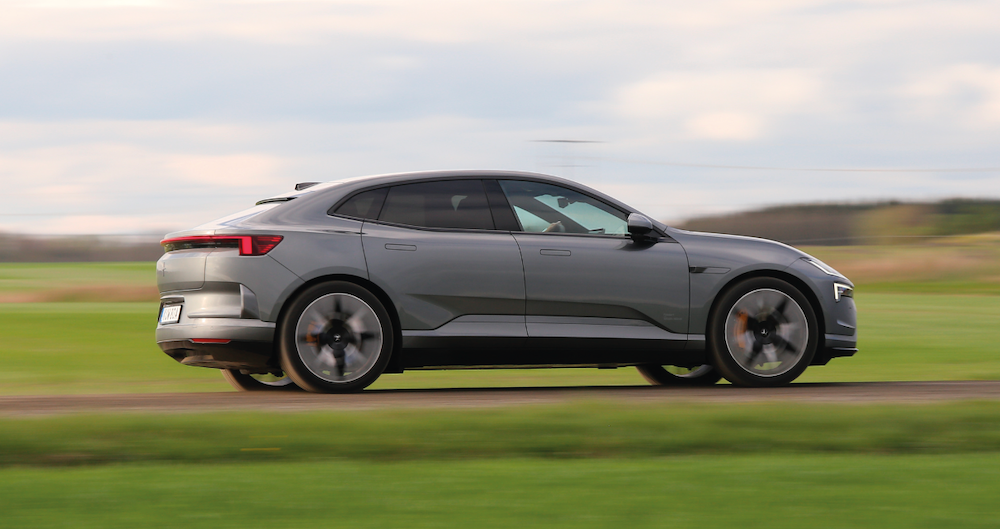 Joakim Rydholm, Senior Chassis Development Engineer en rallyrijder in hart en nieren, wist op aanstekelijke wijze zijn oprechte enthousiasme voor de rijbeleving van Polestar op ons over te brengen. Toch bleef dat natuurlijk bij de theorie. Ook de cijfers spreken voor zich: met 544 pk aan vermogen en 686 Nm aan immer paraat koppel begeeft de Polestar 4 zich theoretisch absoluut in de kringen der sportwagens. Maar weet de Polestar 4 Performance ook in de praktijk te overtuigen? Weet hij als een van de eerste elektrische auto’s puur op ondersteltechniek en rijbeleving verstokte petrolheads aan het glimlachen te krijgen?