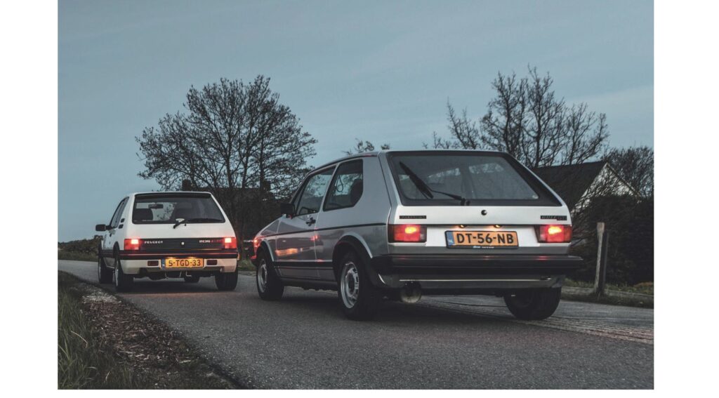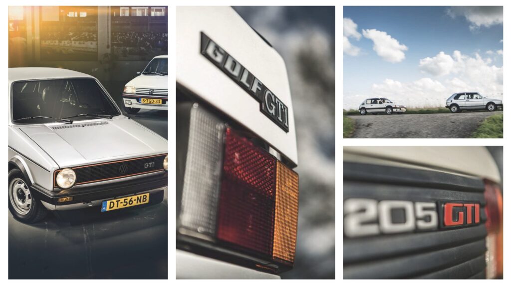 Nu, tientallen jaren later, rijst de vraag: bezorgen deze GTI’s nog steeds dezelfde kick als toen? Om die vraag te beantwoorden, hebben we een ontmoeting geregeld met twee bijzondere exemplaren. De Volkswagen Golf GTI komt uit 1979 en is volledig origineel, met de 110 pk 1,6-liter motor, kleine achterlichten en kunststof bumpers. De Peugeot 205 GTI 1.9 uit 1990 is een goed bewaard Italiaans exemplaar met slechts 78.000 kilometer op de teller. Volkswagen was overigens niet de eerste met de GTI-typeaanduiding; dat was Maserati, waarbij GTI stond voor Gran Turismo Iniezione. Vijftien jaar later gebruikte Volkswagen dezelfde letters voor Grand Touring Injection.