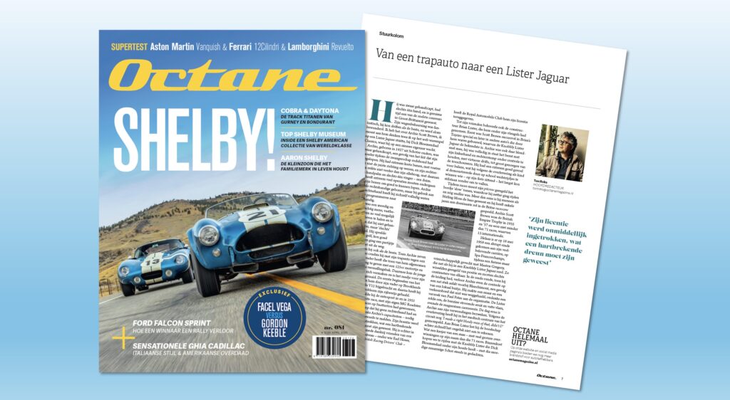 Aan Brian Lister liet hij de boodschap achter zichzelf het ongeluk niet aan te rekenen. Wat een kanjer van een man – met veel grotere overwinningen op zijn naam dan die 71 races. Inmiddels hebben we met de Knobbly Lister die Dick Bloemendaal onder zijn hoede heeft gereden – met die moedige eenarmige Schot steeds in gedachten. In een volgende Octane onze ervaringen met die geweldige auto.