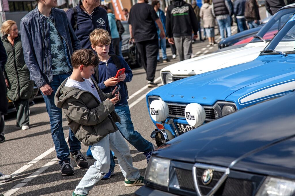 De weergoden waren ons wederom gunstig gezind en onder het voorjaarszonnetje stonden Ford Escort’s (Mexico en RS), een Rolls Royce Silver Shadow, klassieke en jongere Ferrari’s, veel Porsche’s, een kleurrijk tweetal De Tomaso Pantera, de nodige Alfa Romeo’s, maar ook twee vooroorlogse Ford Model A’s, diverse klassieke Mustangs (waaronder een oudroze exemplaar in originele fabriekskleur), een Lamborghini 400 GT, een spinternieuwe Alpine A390 GT en ooit wel eens een GBS Zero gezien?