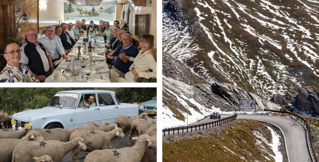 Lachen tijdens het diner om zulke blunders als die van Haiko en Peter is dagelijkse kost – elke misser wordt een mooi verhaal, dat ’s avonds wordt herhaald bij een goed glas wijn. Verkeerde afslagen sturen ons tussen de schapen door, over diepe sporen die de vering uitdagen. Op de kracht van pure ambitie worden lange reeksen van haarspeldbochten genomen en de Passo dello Stelvio, Col de l’Iseran en zelfs de Gavia bedwongen.