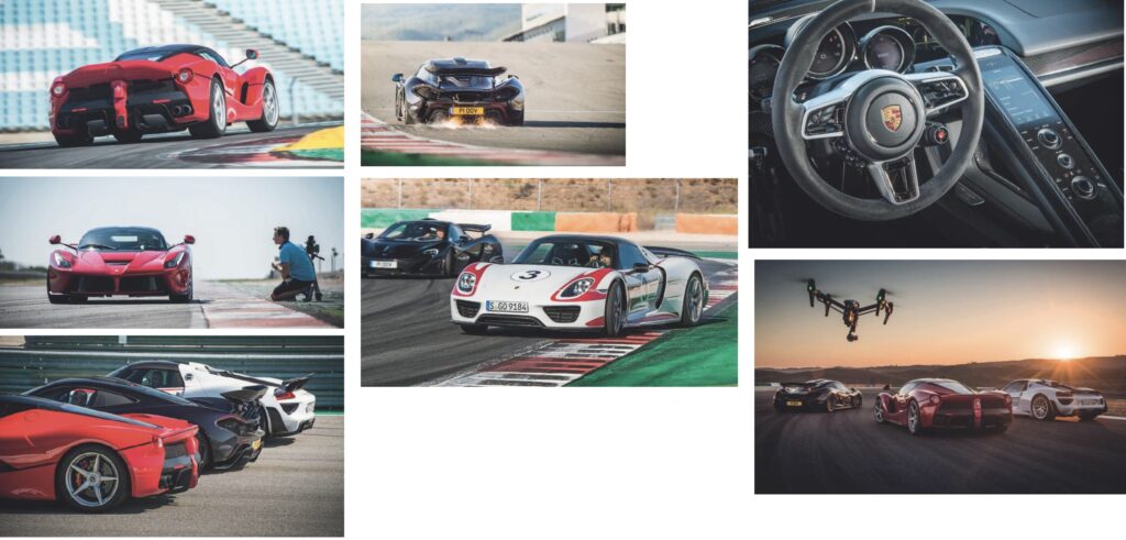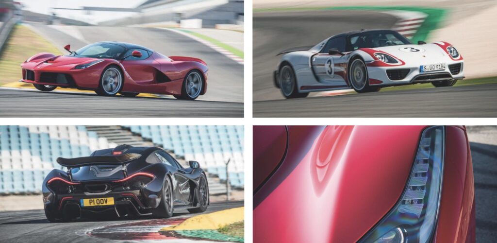 De 918 is het laatst aan de beurt. Ik heb er bij het instappen al medelijden mee, ik acht hem bij voorbaat kansloos na het giftige en ziedende acceleratievermogen van zijn opponenten aan den lijve ervaren te heb dan de LaFerrari en P1. Met zijn waanzinnig slimme torque vectoring weet de Porsche in elke bocht entreesnelheden voor elkaar te boksen die een stuk hoger liggen dan die van de anderen. Hij lijkt niet zo nekbrekend explosief bij de exit, maar dat komt door de vierwielaandrijving. Tractie is er namelijk in overvloed, daarmee zet hij de P1 en LaFerrari royaal op achterstand. Je vloert het gas en hij katapulteert zichzelf zonder onnodig drama de hoek uit, als een duvel uit een doosje. Vóór alles het maximale uit de grip van de banden halen, het voelt alsof de Porsche daarvoor alleen speciaal is ontwikkeld. Ook de achterwielbesturing is geweldig, hij zorgt ervoor dat ik elke apex ondanks een drieste entree toch nog haal. Daar hebben mensen met hoge voorhoofden en computers heel veel tijd aan besteed.